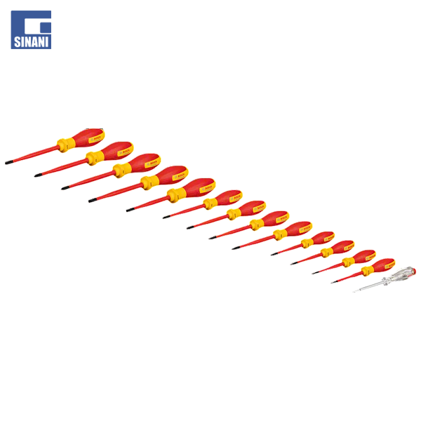 - Seti përmban 1 testues fazor me një pol dhe 13 kaçavida VDE SL 2,5 / 3,5 / 5,5 / 6,5 / PH 1 / PH2 / PZ 1 / PZ 2 / SL/PZ 1 / SL/PZ 2 /TX 10 / TX 15 / TX 20.