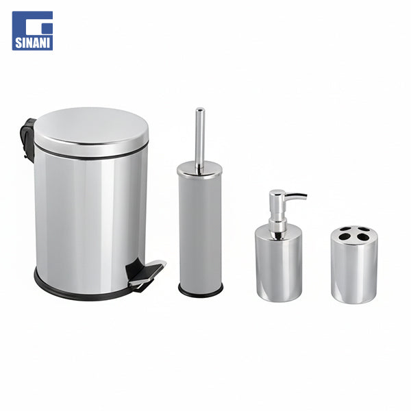 Ky set higjienik 4-pjesësh kombinon stilin modern me funksionalitetin, duke i dhënë tualetit tuaj një prekje elegante dhe praktike.