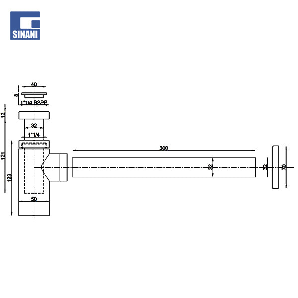 Sifon minimalist i rrumbullakët për lavaman 1" 1/4