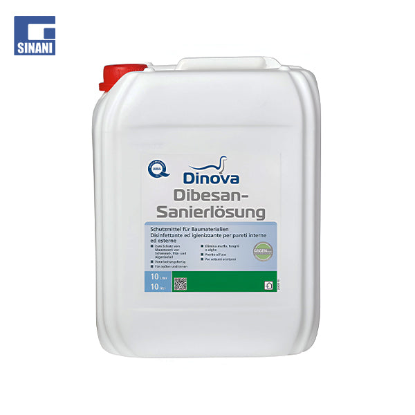 Zgjidhja dezinfektuese Dibesan përdoret për të mbështetur para-trajtimin dhe pastrimin e sipërfaqeve me myk, alga dhe infektime kërpudhore brenda dhe jashtë. Përdoret para veshjeve të mëvonshme me produkte fungicide/algaecide nga sistemi Dinova countergreen.