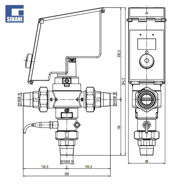 - Valvul përzierjeje hibride me aktuator të motorizuar