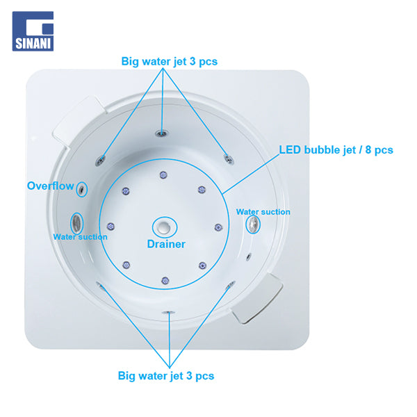 Sistemi i masazhit të ujit funksionon në mënyrë që pompa e ujit të krijojë presion dhe të rrjedhë ujin përmes grykave të masazhit. Mijëra flluska ajri me shpejtësi të lartë uji masazhojnë intensivisht trupin e njeriut. Duke rregulluar rrjedhën e ajrit në grykën e masazhit, ne rregullojmë fuqinë e rrymës së masazhit.