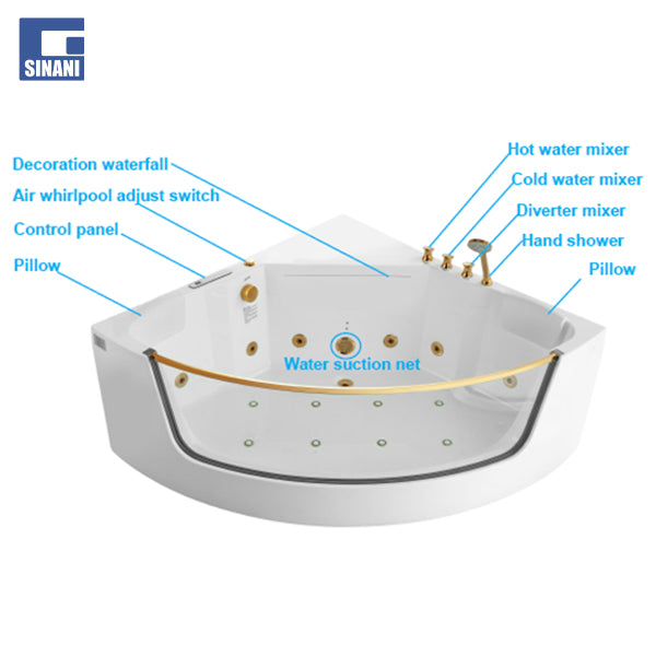 Sistemi i masazhit të ujit funksionon në mënyrë që pompa e ujit të krijojë presion dhe të rrjedhë ujin përmes grykave të masazhit. Mijëra flluska ajri me shpejtësi të lartë uji masazhojnë intensivisht trupin e njeriut. Duke rregulluar rrjedhën e ajrit në grykën e masazhit, ne rregullojmë fuqinë e rrymës së masazhit.