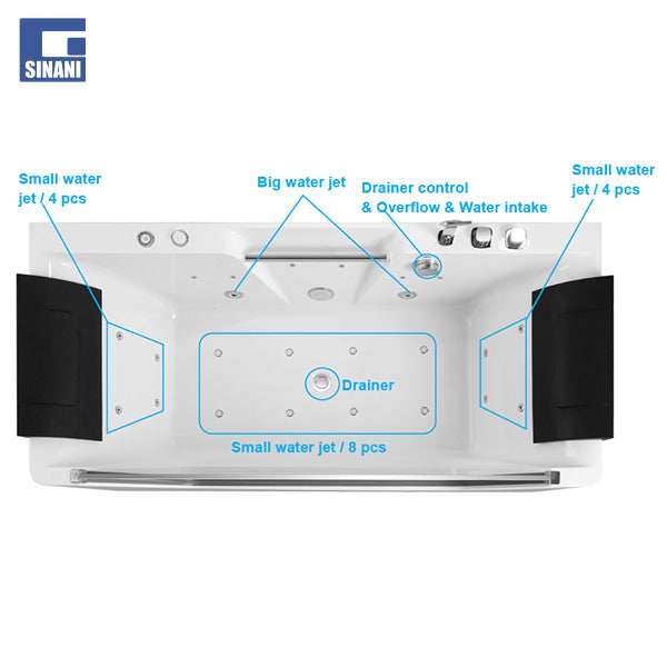 Sistemi i masazhit të ujit funksionon në mënyrë që pompa e ujit të krijojë presion dhe të rrjedhë ujin përmes grykave të masazhit. Mijëra flluska ajri me shpejtësi të lartë uji masazhojnë intensivisht trupin e njeriut. Duke rregulluar rrjedhën e ajrit në grykën e masazhit, ne rregullojmë fuqinë e rrymës së masazhit.